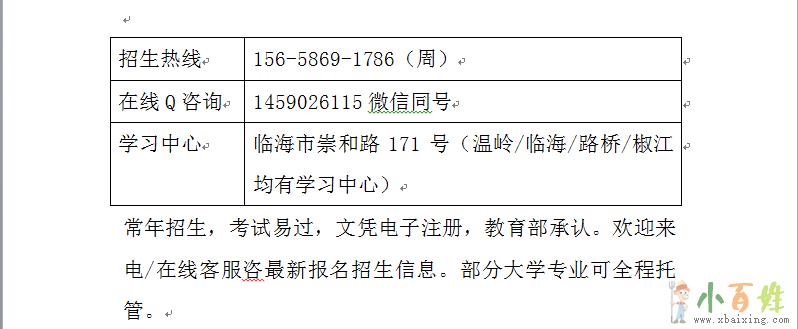 2019年温州临海市成人教育中心自考、函授、电大、远程教育招生,学制短,考试易过,业余学习,文凭电子注册,国家承认xbaixing.com。微信报名wz114px