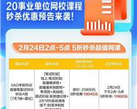 事业单位半价课程就一款,还可以多一点吗?限时秒杀,满足你又一课程钜惠来袭2月20日—2月29日,限时8折优惠2月24日14:00—17:00,定点秒杀价:5折!5折!5折!...