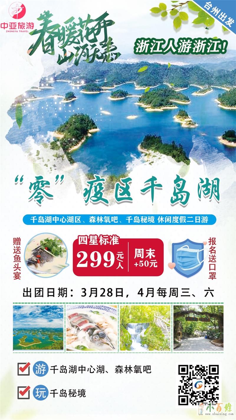 4:两日游,千岛湖中心湖区门票全免,森林氧吧,千岛湖秘境两日游只要299元+68游船,周末加50每人,湖景房!